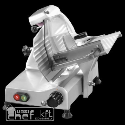 A felvágottszeletelő-gép korrózió és saválló eloxált alumínium ötvözetből készült.