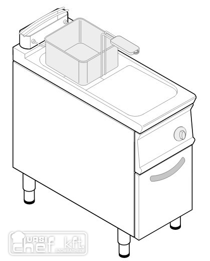 "V" alakú medence, 1 kosárral, 1 fedővel, olajleeresztő tartállyal.