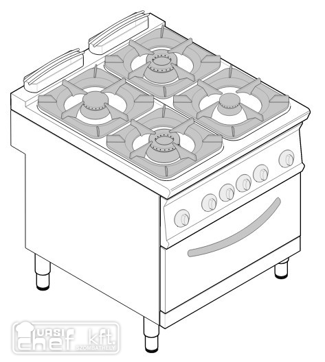 Forgalmazott termékek►Sütő-főző berendezések►Tűzhely►Kombinált►4 égős gáztűzhely, GN 1/1 elektromos sütővel, 900-as sorozat