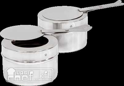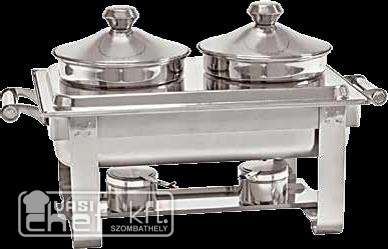 - Chafing, leveses, rozsdamentes, 2 tál, 2 fedő, égőpasztatartóval, 2X4,5 liter