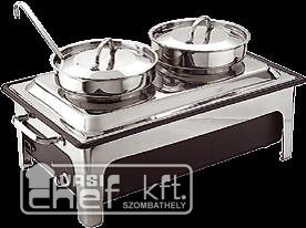 - Chafing, elektromos, leveses, tál hőálló anyagból, többi elem rozsdamentes, fűtés termosztáttal, 230 V, 2 kW, 2X4 liter