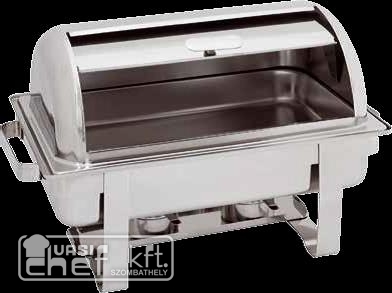 - Chafing, GN 1/1 méretű, roll top tetővel, 180 fokban hajtható, égőpasztatartóval, 9 liter