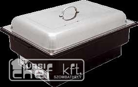 - Chafing, GN 1/1 méretű, rozsdamentes, roll top tetóvel, 90 fokban hajtható, égőpasztatartóval, 9 liter