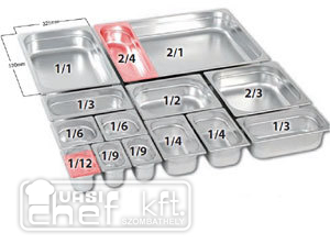 A legkisebb méretű GN edények dresszingek, öntetek, szószok tárolására és szállítására, valamint evőeszköztartónak használatosak.