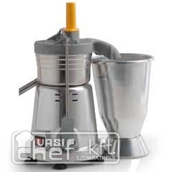 Professzionális gyümölcscentrifuga, 20 liter/óra elméleti kapacitással, 65x40 mm-es betöltőnyílással, műanyag tömőrúddal, 180 mm átmérőjű és 270 mm mély gyümölcshús tartóval, biztonsági mikrokapcsolóval, főkapcsolóval, könnyen tisztítható kivitelben - minden gyümölccsel érintkező rész eltávolítható, rozsdamentes acél és alumínium ötvözet burkolattal.