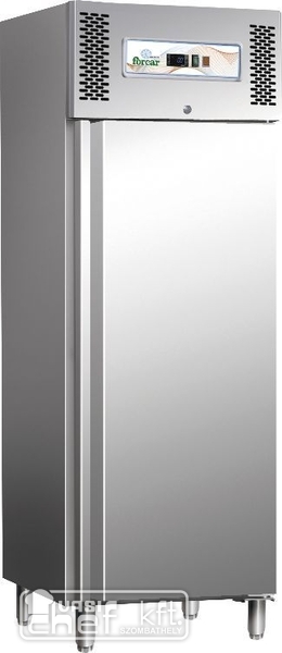 Kívül-belül rozsdamentes acél kivitel, rozsdamentes acél állítható lábak. Ventillációs hűtés, automata leolvasztás. Digitális hőmérséklet szabályzás és kijelzés. Hőmérséklet szabályzás -2/+8 fok között. Környezeti hőmérséklet +32 fok. Hűtőközeg R290. 3 darab GN 2/1 (650X530 mm) méretű rácspolccal.