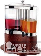 - Juice adagoló, 2X5 literes, polycarbonát tartály, fa talp