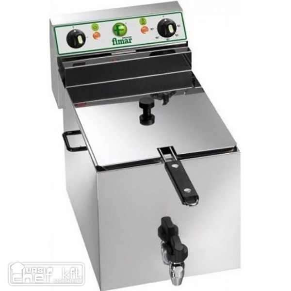 Elektromos üzemű. Teljesen rozsdamentes acél kivitel. Rozsdamentes acél kosár. Biztonsági termosztát. Hőmérséklet szabályzás 50-180 fokig. Mikrokapcsolóval. 1 darab kosár. 11 kg/óra teljesítmény. Kosár teljesítmény 1,25 kg.