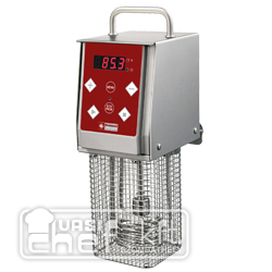 Elektromos üzemű vízfűtő és keringtető egység alacsony hőmérsékleten történő vákuum alatti hőkezeléshez (sous vide technológia), maximum 50 literes medencéhez, 20-95°C közti digitális hőmérsékletszabályozással, digitális kijelzővel, manuális vagy előreprogramozott üzemmóddal, 5 programhellyel, hátsó rögzítőperemmel, felül rozsdamentes acél fogantyúval, rozsdamentes acél kivitelben