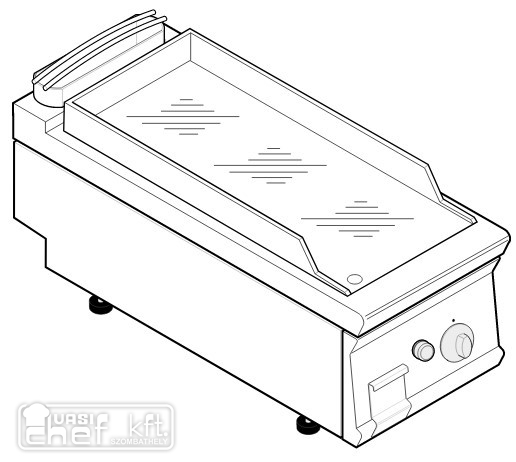 Teljesen rozsdamentes acél kivitel. Állítható lábak. Zsírgyűjtő fiók. 3 oldalt fröccsenés elleni felhajtás. Hőmérséklet szabályzás 60-300 fok között.