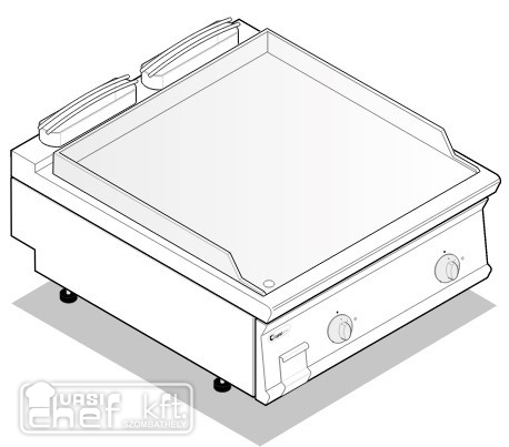 Teljesen rozsdamentes acél kivitel. Állítható lábak. Zsírgyűjtő fiók. 3 oldalt fröccsenés elleni felhajtás. Hőmérséklet szabályzás 50-320 fok között.
