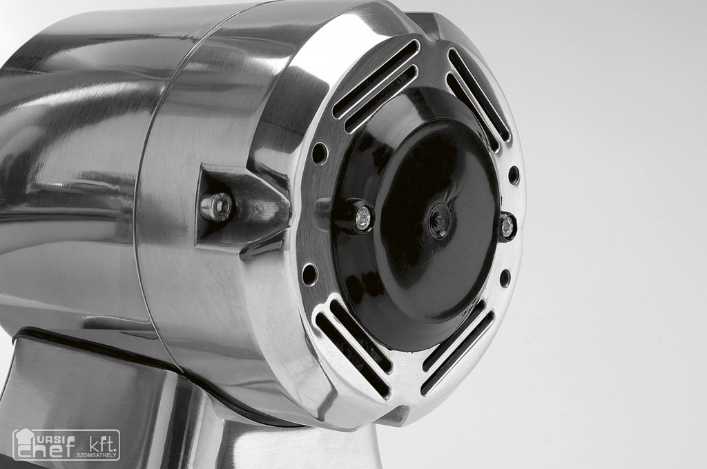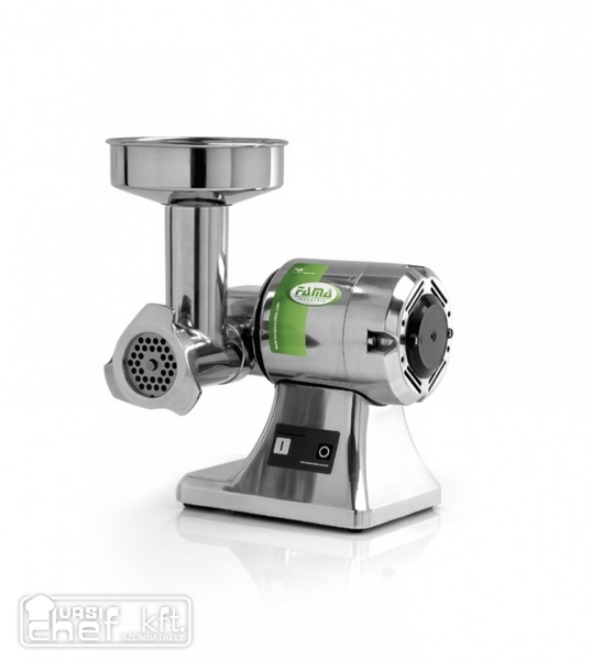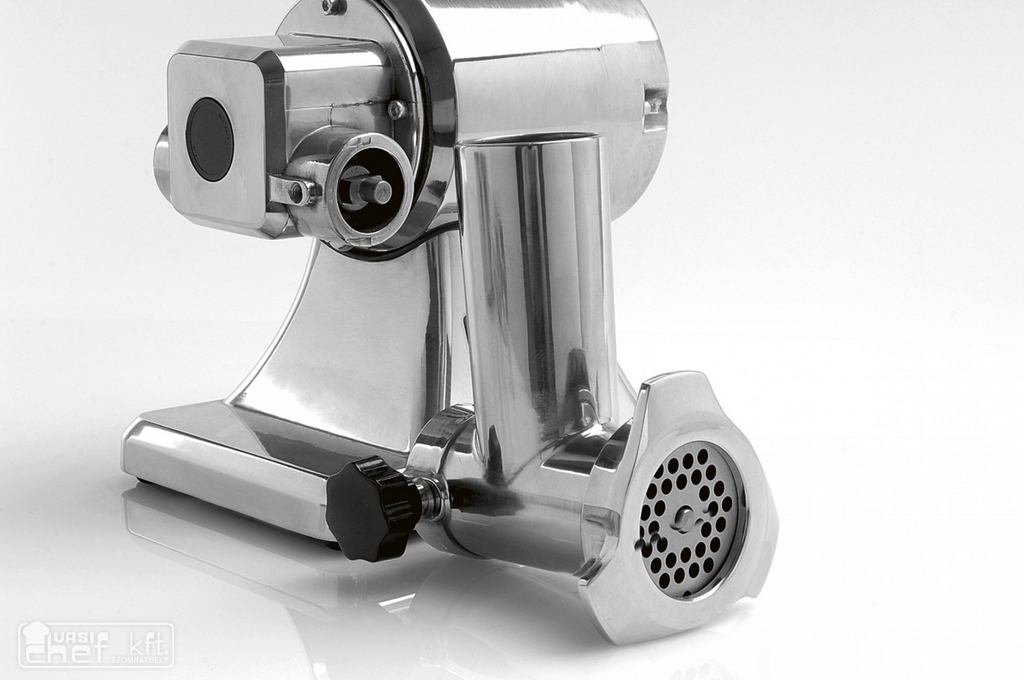 Húsdaráló alumínium öntvény házban 8-as méretű, biztonsági kapcsolóval,rozsdamentes késsel és tárcsával, rozsdamentes etetőtálcával.